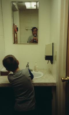 Bathroom. Little boys grow up. I'm afraid to look. Is that me; was I that little boy?